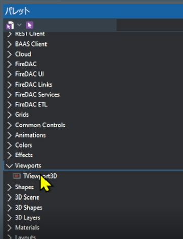 パレットからViewport3Dをダブルクリックしてフォームに追加