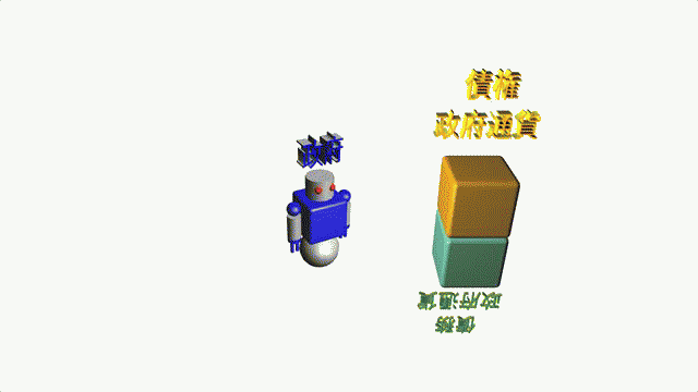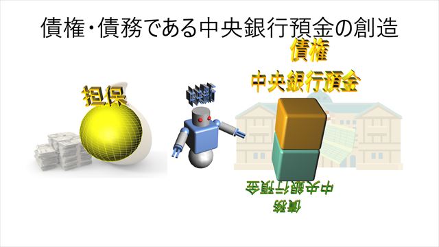 政府は、国全体の生産力で将来に生産される富を担保に、債権・債務の創造により政府の借用証書である政府通貨を発行します(信用創造)。中央銀行は政府通貨を担保に債権・債務の創造により中央銀行預金を創造します(信用創造)。中央銀行は創造した中央銀行預金により、政府口座に入金します。